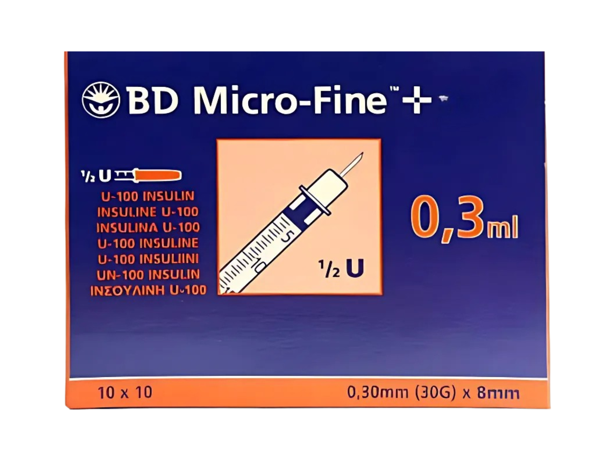 BD Microfine Syringe and Needle u100 0.3ml 30g 8mm (Box of 100)
